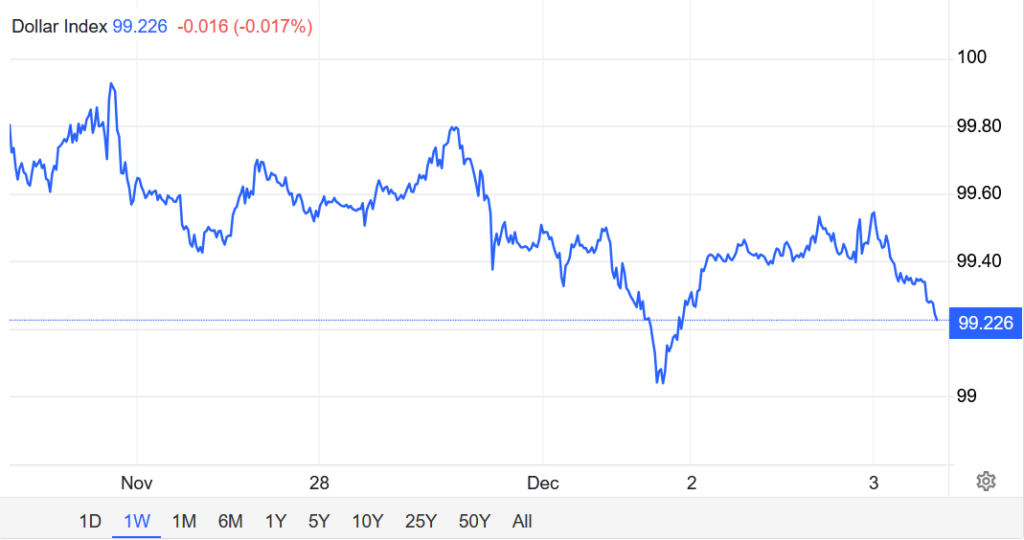 Dữ liệu công bố hôm thứ Hai cho thấy hoạt động sản xuất suy giảm tháng thứ chín liên tiếp và với tốc độ nhanh nhất trong bốn tháng, củng cố thêm luận điểm về việc cần nới lỏng chính sách. Sự chú ý giờ chuyển sang báo cáo việc làm ADP tháng 11 vào thứ Tư và dữ liệu PCE tháng 9 (bị trì hoãn) công bố vào thứ Sáu, những yếu tố có thể cung cấp thêm tín hiệu về triển vọng chính sách của Fed.
