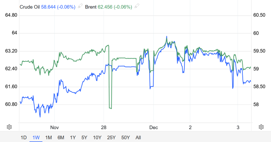 Thị trường năng lượng hạ nhiệt khi sự chú ý chuyển sang các cuộc đàm phán hoà bình Nga – Ukraine khi Tổng thống Nga Vladimir Putin gặp gỡ đặc phái viên của Tổng thống Mỹ Donald Trump, Steve Witkoff và con rể Jared Kushner tại Điện Kremlin vào ngày thứ Ba. Nếu căng thẳng giảm bớt, giá dầu khó lòng bứt phá.