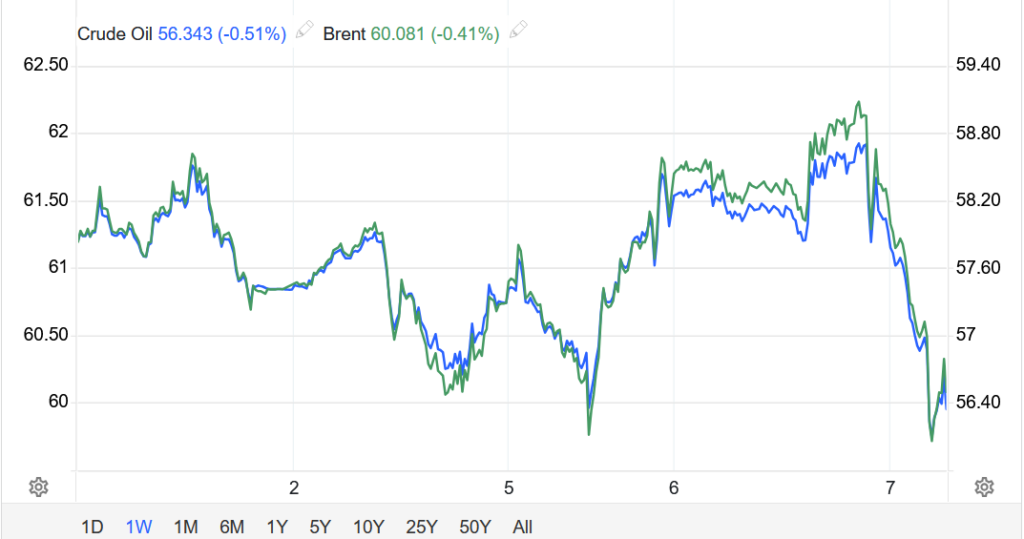 Khép phiên ngày 06/01, hợp đồng dầu Brent giảm 1,72%, tương đương 1,06 USD, chốt phiên ở mức 60,70 USD/thùng.