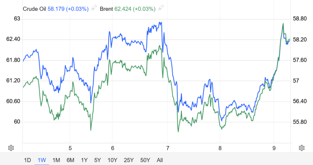 Khép phiên ngày 08/01, hợp đồng dầu Brent tương lai tăng 2,03USD, tương đương 3,39%, lên 61,99 USD/thùng.