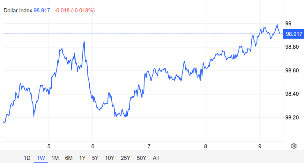 Hôm thứ Năm, Chỉ số DXY tăng lên 98,9.