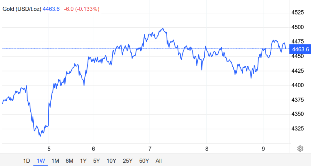Hợp đồng vàng tương lai của Mỹ giao tháng 2 chốt phiên giảm nhẹ, xuống $4460,70/oz.