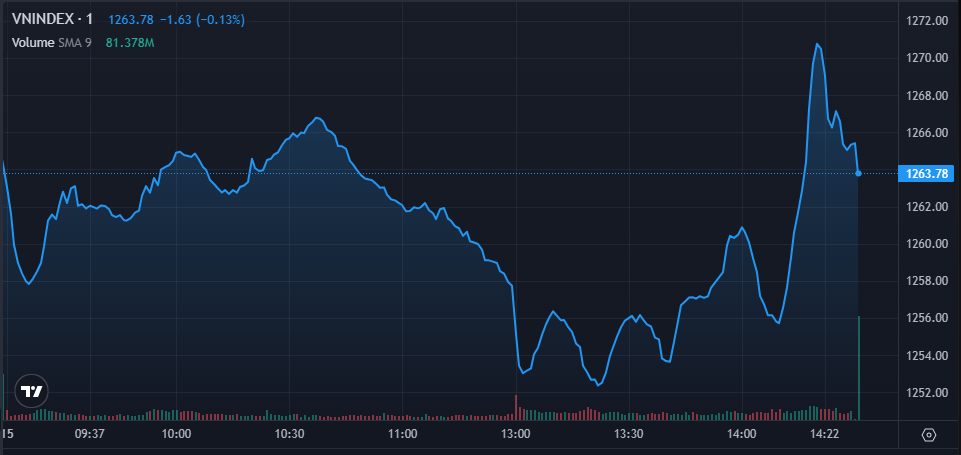 Chốt phiên, VN-Index giảm 0,48 điểm (-0,04%), xuống 1.263,78 điểm; HNX-Index giảm 0,14 điểm (-0,06%) xuống 239,54 điểm; UPCoM-Index giảm 0,27 điểm (-0,29%) xuống 91,35 điểm.