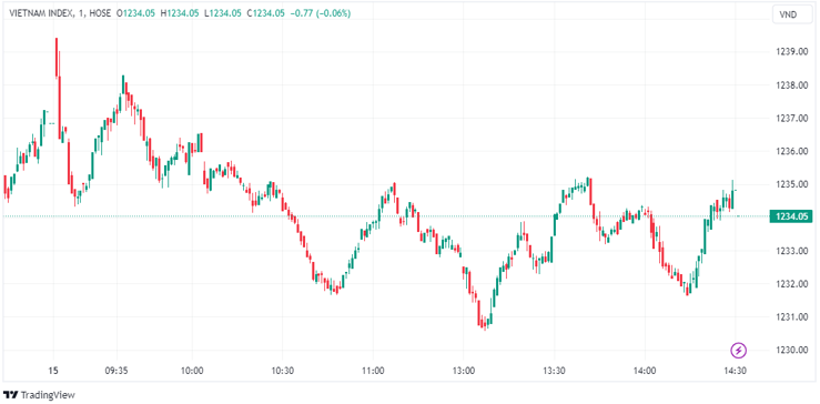 Kết phiên, VN-Index giảm 2,79 điểm (-0,23%) về mức 1.234,05 điểm; HNX-Index tăng 1,01 điểm (0,4%) lên mức 251,45 điểm; UPCoM tăng 0,03 điểm (0,03%) lên mức 93,49 điểm.