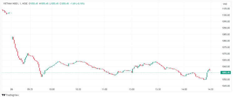 Thậm chí có thời điểm VN-Index đã thủng 1.050 điểm khi số mã giảm sàn tiếp tục tăng lên và hơn 150 mã. Tại ngưỡng điểm này, chỉ số thêm một lần được “cứu” nhờ một số cổ phiếu thu hẹp đà giảm và VN-Index trồi nhẹ lên trên 1.055 điểm khi đóng cửa.
