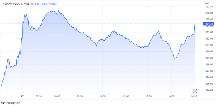 Kết phiên, VN-Index tăng 2,3 điểm (+0,2%) lên 1.134,33 điểm; HNX-Index giảm 0,19 điểm (-0,08%) còn 230,82 điểm; UPCoM tăng 0,05 điểm (+0.06%) lên mức 85,65 điểm.