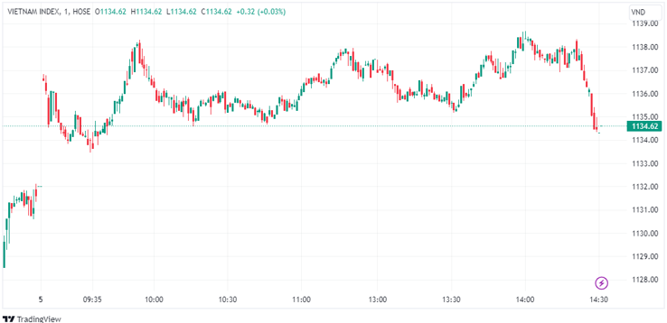 Chốt phiên, VN-Index tăng 2,62 điểm (+0,23%), lên 1.134,62 điểm; HNX-Index giảm 0,92 điểm (-0,4%) xuống 227,84 điểm; UPCoM-Index giảm 0,12 điểm (-0,14%), xuống 85,41 điểm.
