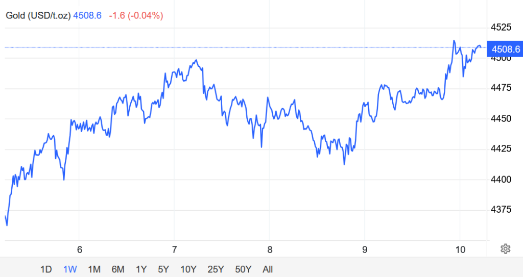 Giá vàng giao ngay tăng 0,5% lên $4496,09/oz, và đang hướng tới mức tăng khoảng 3,9% trong cả tuần.