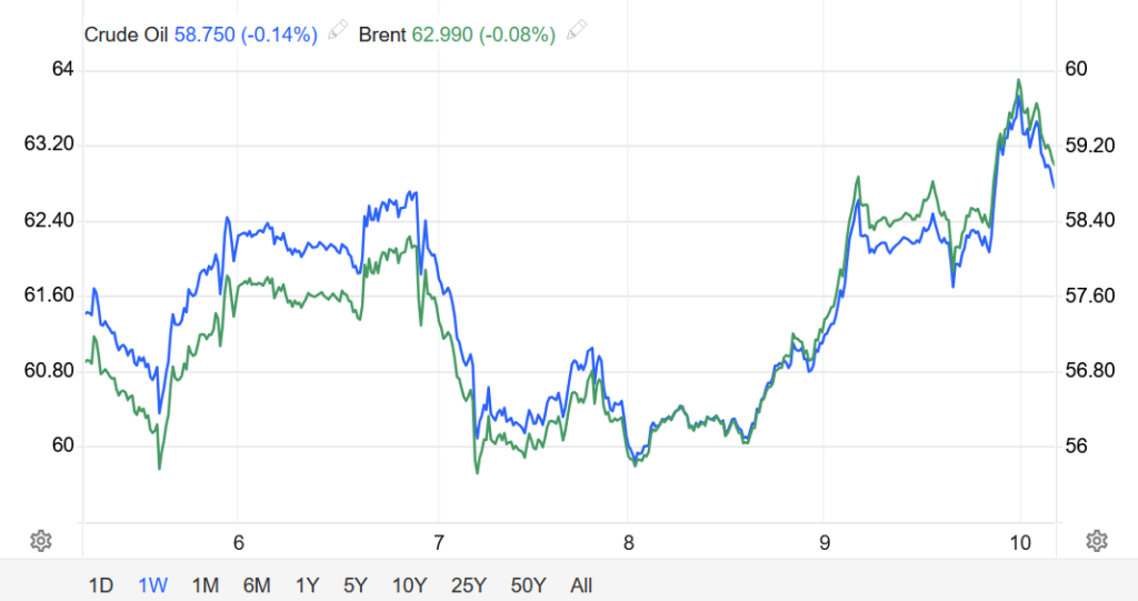 Tính chung cả tuần, dầu Brent đang hướng tới mức tăng 2,8%, còn dầu WTI tăng 1,5%.