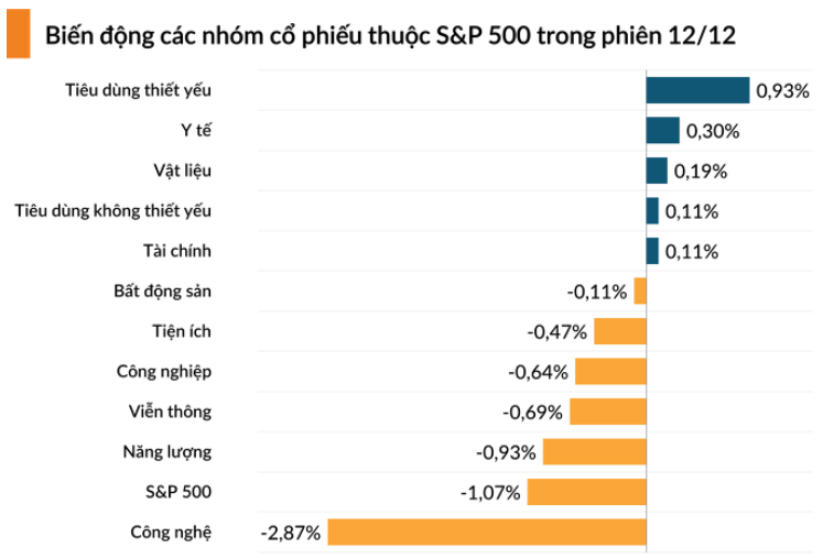 Đóng cửa phiên giao dịch thứ Sáu ngày 12/12, chỉ số S&P 500 giảm 1,07% chốt ở 6.827,41 điểm.