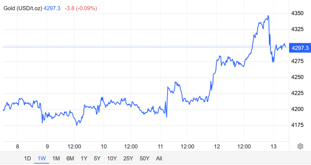 Giá vàng giao ngay tăng 0.3% lên $4293,43/oz, sau khi trước đó chạm mức cao nhất kể từ ngày 21/10.