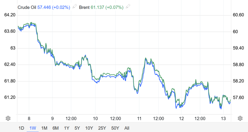 Tính chung cả tuần, giá dầu Brent và WTI đều giảm hơn 4%, phản ánh những bất ổn rộng hơn của thị trường năng lượng.