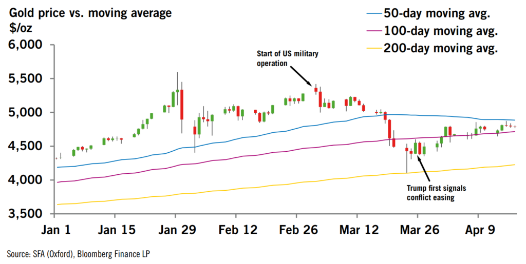 - Đà hồi phục bắt đầu khi xuất hiện tín hiệu hạ nhiệt căng thẳng và lệnh ngừng bắn tạm thời ngày 7/4.