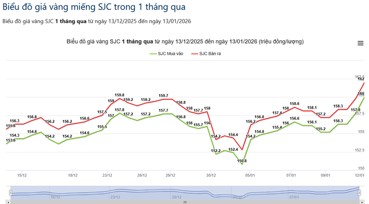 Vàng miếng ngày 13/1: Giữ đỉnh kỉ lục 162 triệu – chênh với thế giới gần 13tr