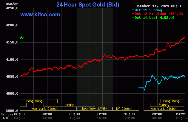 Phiên hôm nay, giá vàng thế giới đã tăng lên kỉ lục mới $4170/oz. Sau khi tăng hơn 400USD trong tháng 9, giá vàng quốc tế đã tăng tiếp 300USD chỉ trong 14 ngày đầu tháng 10. Thị trường bước vào pha tăng giá cực kì chóng mặt và không có bất kì nhịp tích lũy lại hay điều chỉnh đáng kể nào.