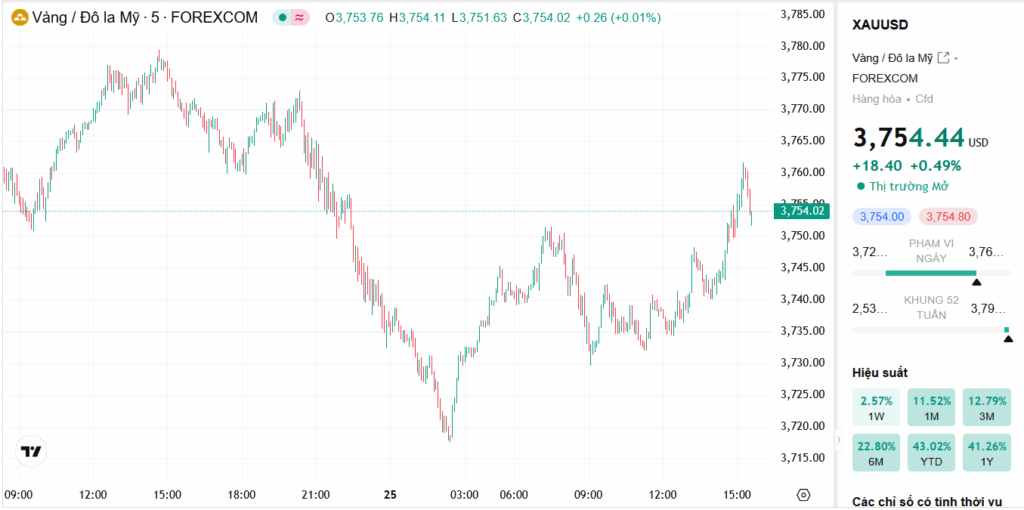 Trên thị trường thế giới, giá vàng phiên hôm nay neo quanh vùng $3760/oz sau khi từng giảm về dưới mốc $3720 trong đêm qua.