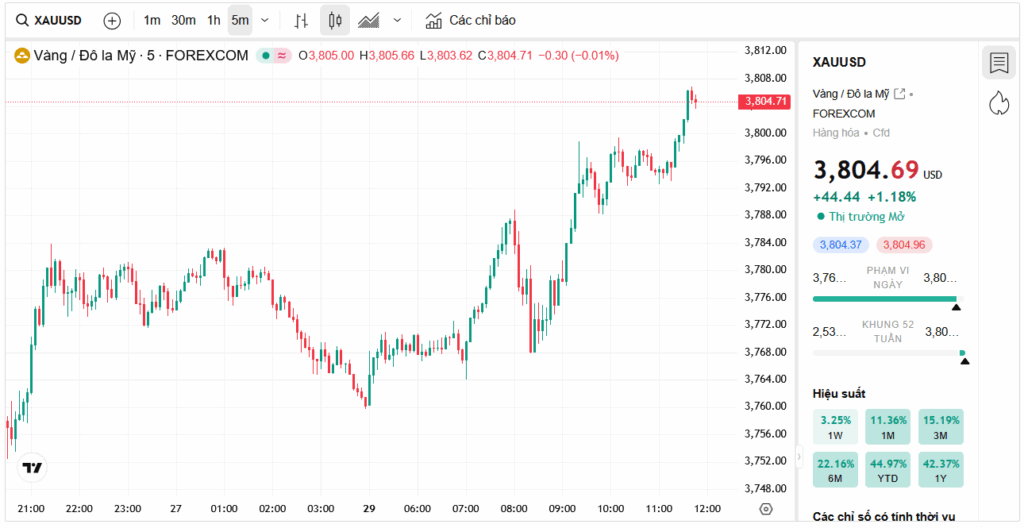 Trên thị trường thế giới, giá vàng chính thức xác lập mức cao mới mọi thời đại là $3800/oz.