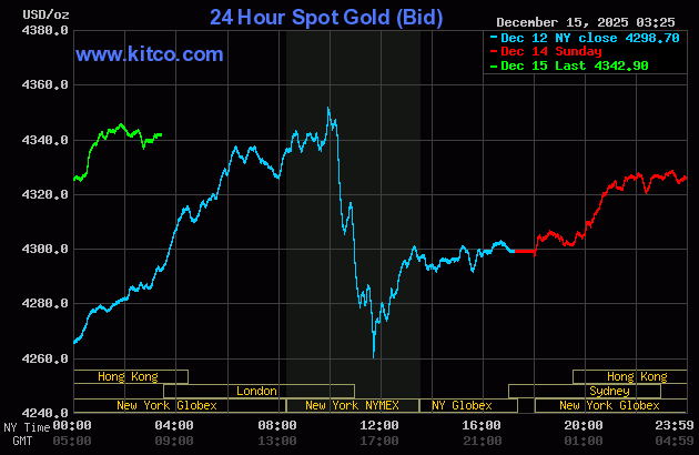 Giá vàng thế giới tăng tốt trong phiên giao dịch đầu tuần giao dịch rất tích cực, vượt mốc $4300 và hiện đang lên sát ngưỡng $4340/oz.