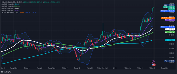 - Ngắn hạn: Tăng, vàng nằm cao trên mức trung bình động 20 ngày tại $2192.