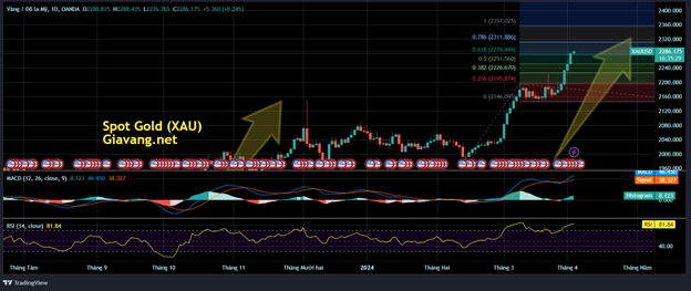 Theo biểu đồ hàng ngày, giá vàng vẫn đang trong xu hướng tăng và các nhịp chỉnh thường diễn ra rất nhanh và thị trường đảo chiều ngay sau đó. Phiên hôm qua chúng tôi cho điểm bán $2276 và nhiều nhà đầu tư đã chốt lời vùng $225x đem lại hiệu quả cao. Vì là xu hướng tăng nên chúng tôi đánh giá nên chốt lời sớm và ngay lập tức vàng lại lên mức cao mới. Các vùng giá kĩ thuật đang được nâng lên cao