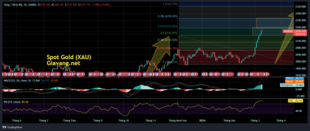 • Điểm Mua: Có thể xem xét mua khi giá vàng tại các vùng $2155 – $2134 – $2114 – $2088. Cơ hội mua xuất hiện khi lạm phát tại Mỹ cao hơn dự báo, khiến nhà đầu tư chốt lời đẩy giá vàng đi xuống sau đợt tăng nóng.