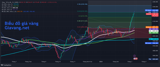 • Ngắn hạn: Tăng, vàng nằm cao trên mức trung bình động 20 ngày tại $2072.