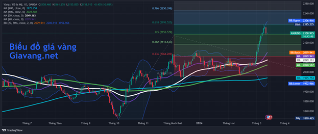 - Ngắn hạn: Tăng, vàng nằm cao trên mức trung bình động 20 ngày tại $2079.