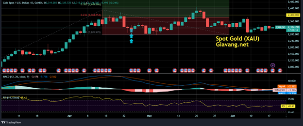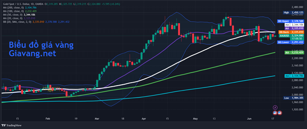 - Ngắn hạn: Giảm, giá vàng nằm dưới đường trung bình động 20 ngày tại $2335.