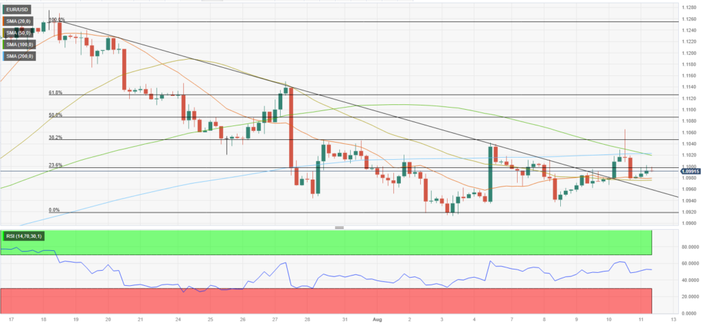 Cặp EUR/USD giữ ổn định ở vùng 1,1000 vào thứ Sáu sau khi leo lên trên 1,1060 vào thứ Năm – mức cao nhất trong 2 tuần. Tuy nhiên, của EUR trong phiên 10/8 chỉ tồn tại trong thời gian ngắn và cặp tiền này nhanh chóng bị bán, đóng cửa phiên dưới mốc 1,1000.