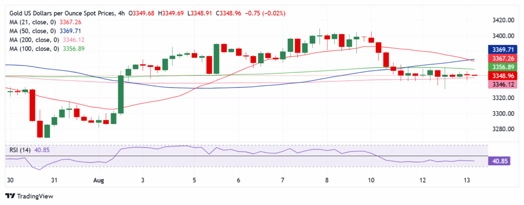Giá vàng (XAU/USD) sáng thứ Tư tiếp tục dao động sát vùng 3.350 USD/ounce sau cú bật lên từ đáy tuần 3.331 USD. Dù CPI Mỹ tháng 7 tăng 2,7% (thấp hơn kỳ vọng 2,8%), số liệu này đã giảm bớt lo ngại stagflation và củng cố kỳ vọng Fed sẽ cắt giảm lãi suất vào tháng 9.