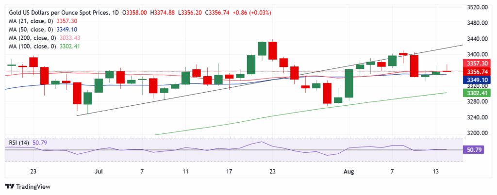 (GVNET) Giá vàng thế giới (XAU/USD) tiếp tục giữ đà tăng phiên thứ 3 liên tiếp, duy trì trên ngưỡng tâm lý 3.350 USD/ounce trong phiên giao dịch châu Á. Thị trường đang chờ dữ liệu PPI Mỹ để tìm động lực mới cho xu hướng.