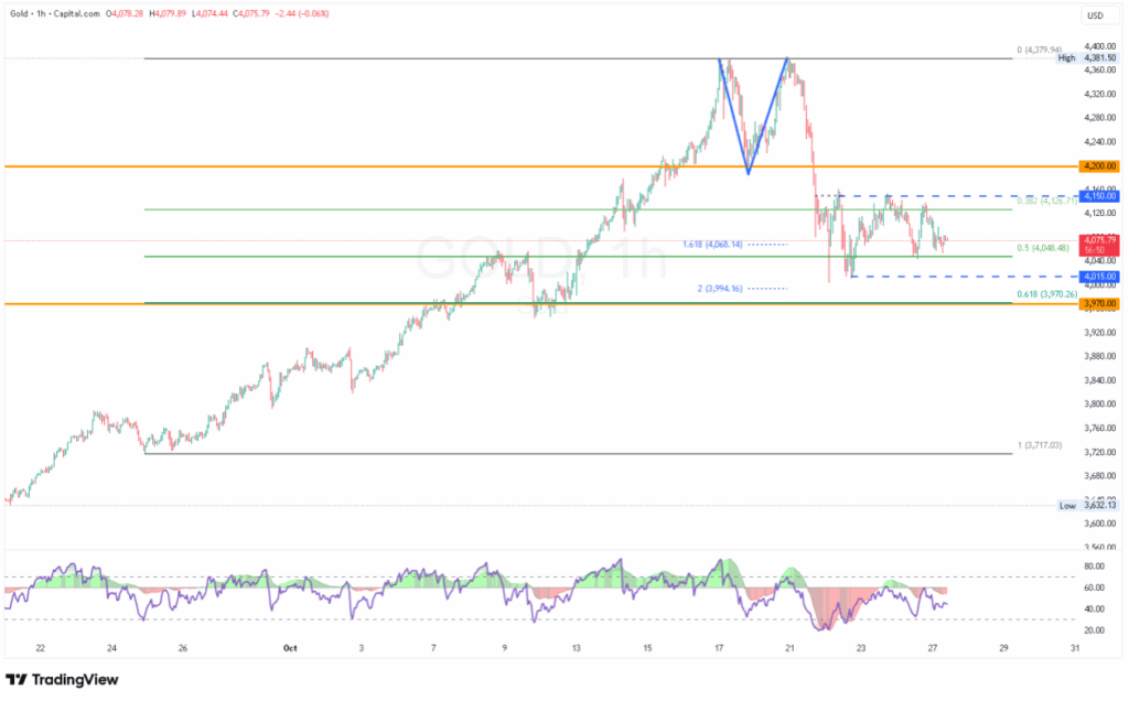 Tuy nhiên, rủi ro địa chính trị tiềm ẩn cùng khả năng Fed cắt giảm lãi suất có thể giúp vàng giữ được nền giá ổn định quanh các vùng hỗ trợ kỹ thuật quan trọng. Trong ngắn hạn, nhà đầu tư nên duy trì chiến lược thận trọng, ưu tiên bán khi giá hồi phục và chốt lời ngắn ở vùng thấp hơn, trong khi theo dõi sát diễn biến từ cuộc họp Fed và kết quả đàm phán thương mại Mỹ – Trung – hai yếu tố có thể đảo chiều tâm lý thị trường bất kỳ lúc nào.