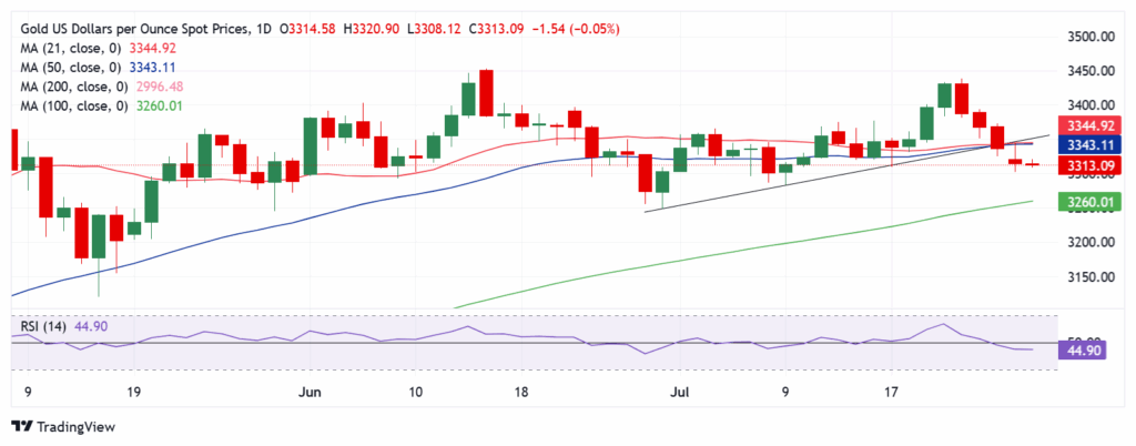 - Giá vàng đã xuyên thủng đường xu hướng tăng quan trọng tại $3.342