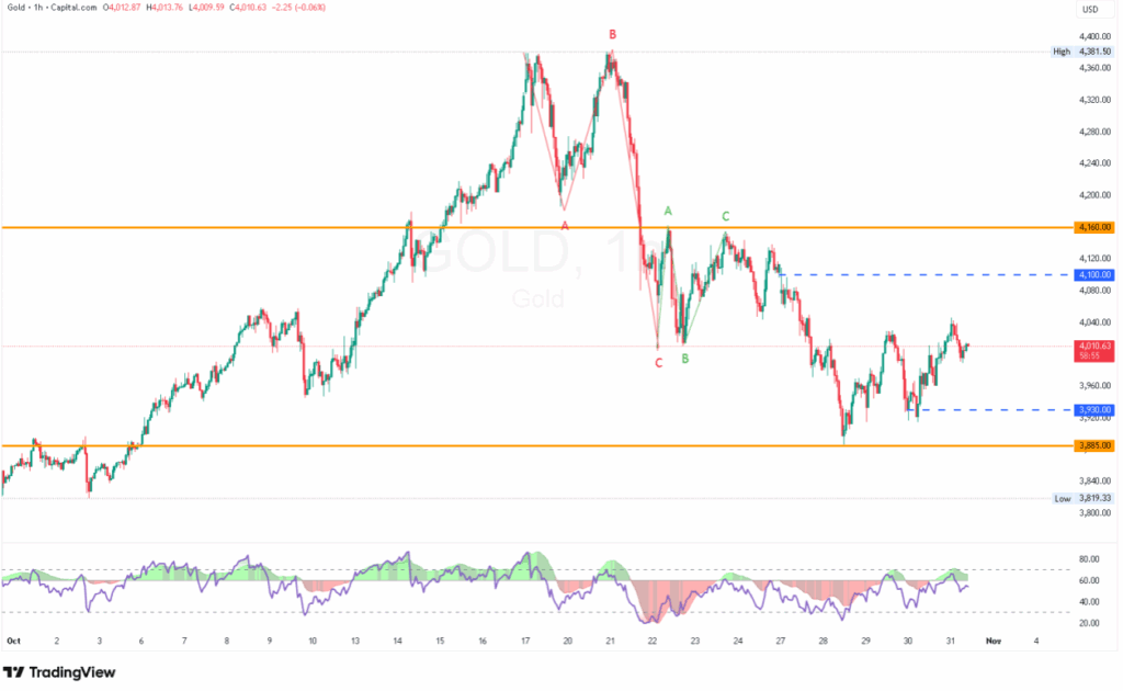 Trên khung biểu đồ 1 giờ, vàng đang duy trì xu hướng tăng ngắn hạn, với vùng hỗ trợ mạnh quanh 3.885 USD – nơi giá liên tục bật tăng trong những phiên gần đây. Mức 4.000 USD hiện đóng vai trò như ngưỡng tâm lý quan trọng, tạo nền cho đà phục hồi tiếp theo.