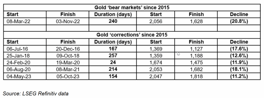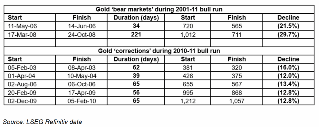 Lịch sử đã chứng minh, những người mua vàng trong giai đoạn giảm giá 10–20% thường đạt lợi nhuận lớn khi chu kỳ tăng kết thúc.