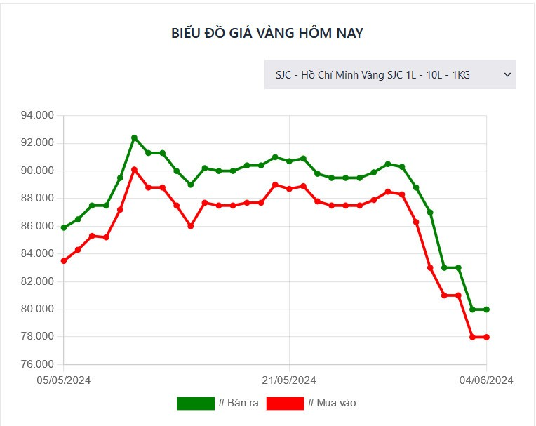 Hôm qua 3/6, thị trường vàng trong nước giảm khi Ngân hàng nhà nước đưa ra thông báo về mức giá vàng mà họ bán ra cho các Ngân hàng thương mại. Giá vàng SJC bán ra cho người dân theo đó cũng về dưới 80 triệu đồng/lượng.