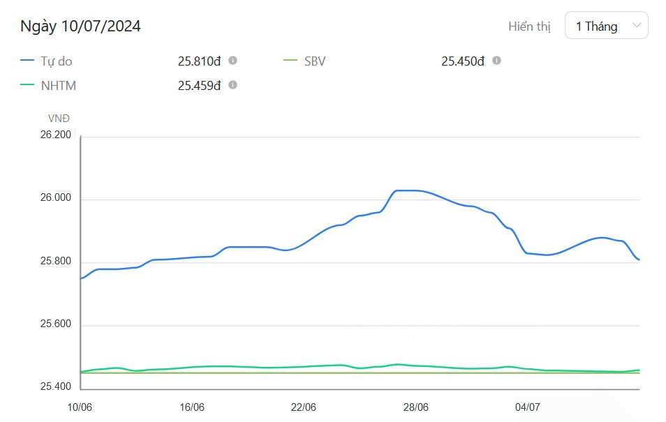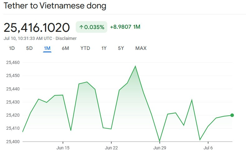Tương tự tỷ giá USD/VND, USDT cũng diễn biến tương đồng.