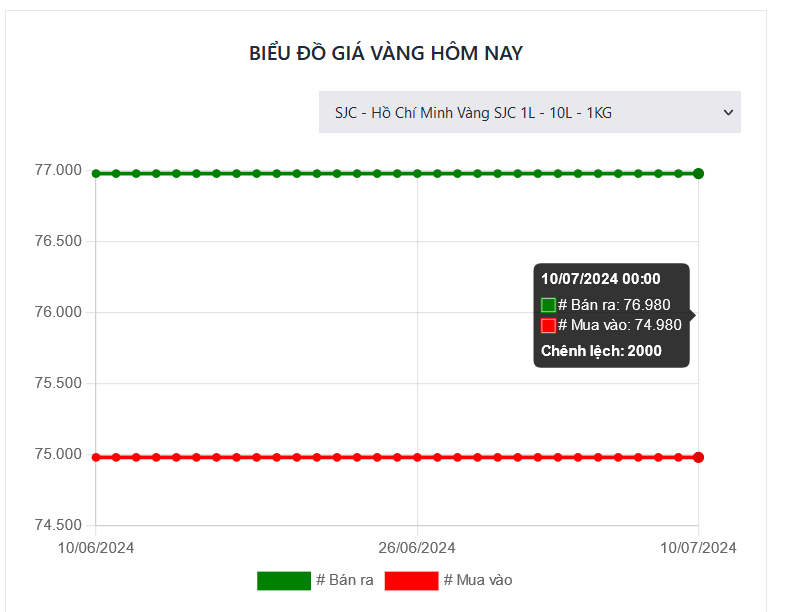 DOJI Hà Nội, DOJI Hồ Chí Minh cùng niêm yết giao dịch mua – bán tại mốc 74,98 – 76,98 triệu đồng/lượng, giữ nguyên chiều bán kể từ cuối ngày 6/6 và giữ nguyên giá mua vào cuối phiên 19/6.
