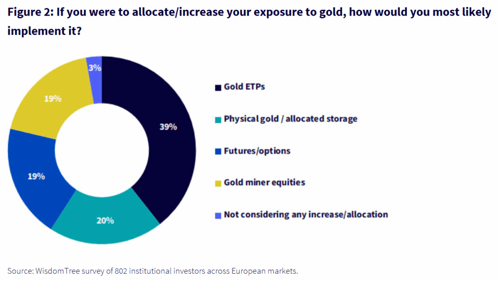 - Khoảng 40% nhà đầu tư chọn ETP/ETF để tiếp cận vàng – cao hơn hẳn bullion, hợp đồng tương lai hoặc cổ phiếu khai thác.