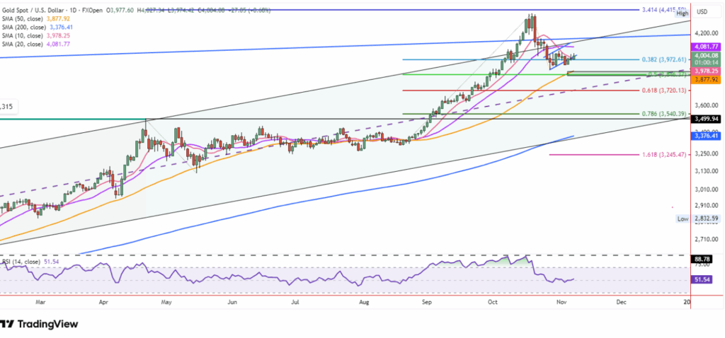 - Hỗ trợ ngắn hạn: $3.974 – nếu thủng mức này, mục tiêu giảm kế tiếp là $3.929 và $3.886.