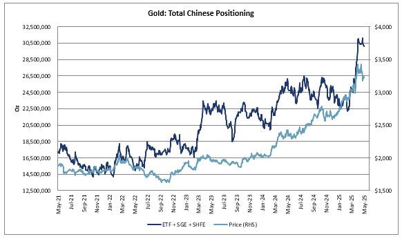 Ngay cả khi giá vàng có dấu hiệu điều chỉnh gần đây, nhà đầu tư Trung Quốc vẫn giữ vững niềm tin. Theo dữ liệu từ Goldman Sachs, phiên giao dịch đêm tại Thượng Hải đã chứng kiến dòng tiền mạnh mẽ quay trở lại, với khối lượng mở (open interest) trên Sàn Giao dịch Hàng hóa Thượng Hải (SHFE) tăng lên mức kỷ lục mới. Giá vàng đã phục hồi trở lại trên ngưỡng 3.300 USD/ounce.
