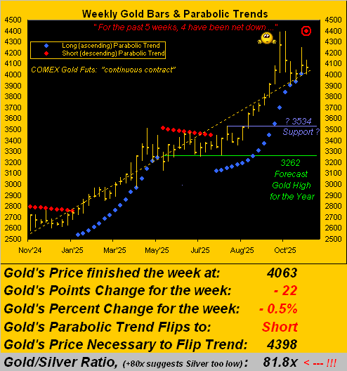 Tuần này đánh dấu bước ngoặt quan trọng khi xu hướng parabolic tuần của vàng chuyển sang Short, kết thúc chuỗi 17 tuần tăng liên tiếp – một trong những nhịp tăng bền vững nhất kể từ nhiều năm trở lại đây.