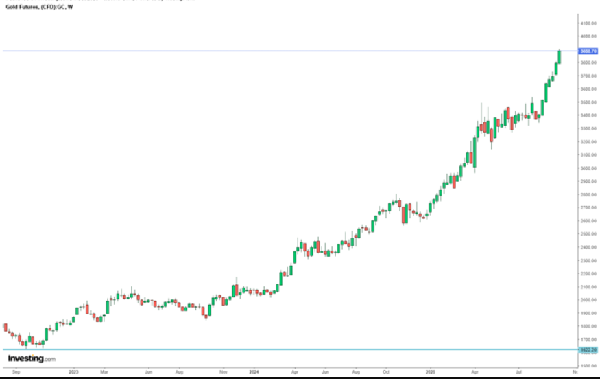 Ngày nay (10/2025), vàng đã vọt lên $3.863/oz, tăng hơn 137%, tiến sát ngưỡng $4.000/oz. Điều gì đã tạo nên đà tăng lịch sử này?