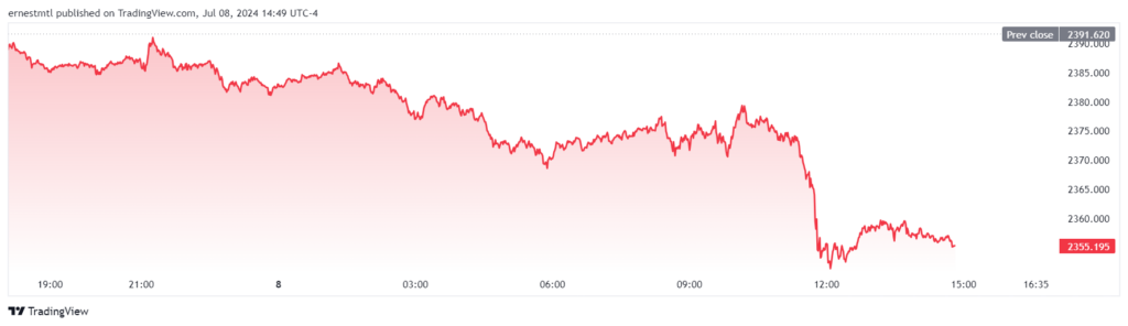 Chuyển sang bức tranh kỹ thuật, Kuptsikevich lưu ý rằng vàng đã gặp phải mức kháng cự vững chắc ở mức $2390, ngang mức đã gây ra sự đảo chiều cục bộ vào tháng 4. Ông nói: