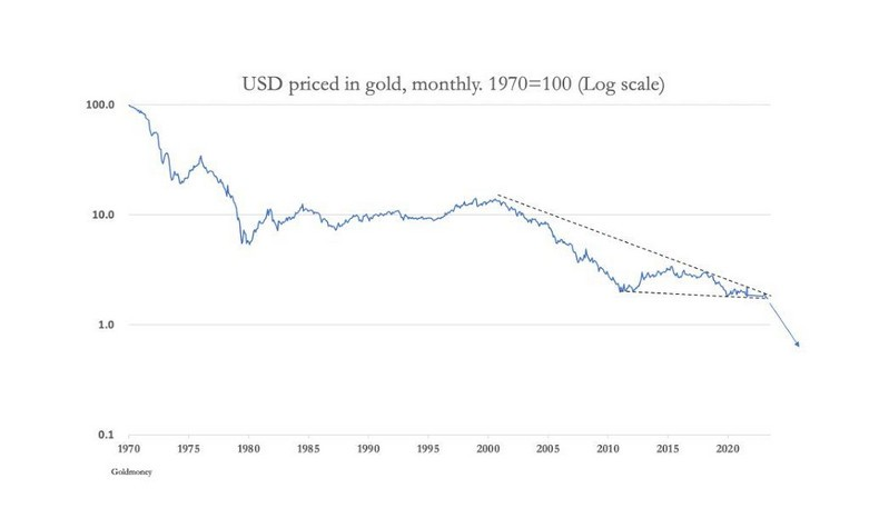 Alastair MacLeod, Trưởng phòng Nghiên cứu của Goldmoney và SchiffGold, đã chia sẻ biểu đồ sau đây tóm tắt quan điểm của ông về quỹ đạo có thể xảy ra của vàng vào năm 2024.