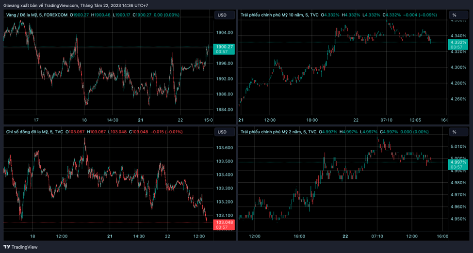 Về mặt cơ bản, việc mất giá của kim loại quý này xuất phát từ sự tăng lên của lợi suất trái phiếu Hoa Kỳ. Lợi suất trái phiếu 10 năm đang dao động xung quanh 4,30%, gần ngưỡng cao ghi nhận vào tháng 10 năm 2022.
