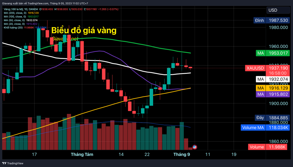 Mặt khác, mức hỗ trợ ở đường DMA 50 là 1.932 USD đã gần xuất hiện trong sáng nay. Đây là mức đáy của ngày hôm thứ Sáu và là bệ đỡ của thị trường.