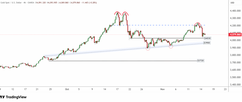 - Vàng: hỗ trợ quan trọng 4.030 → 3.900 USD