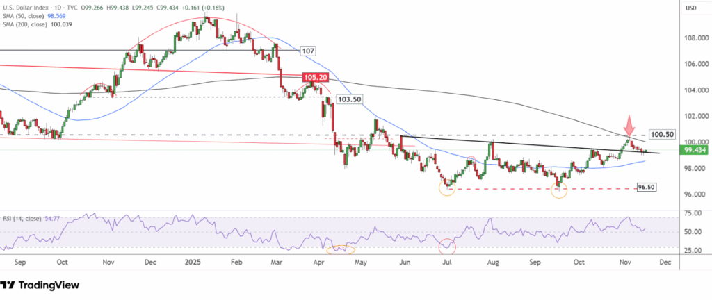 - USD Index: phạm vi 96–100 vẫn đang chi phối thị trường