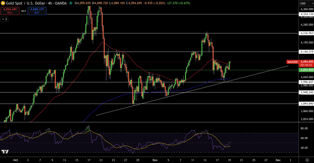 Triển vọng: Miễn là vàng giữ trên trendline tăng, cấu trúc thị trường vẫn nghiêng về tăng. Bứt phá $4.144 sẽ xác nhận đà phục hồi lớn hơn.